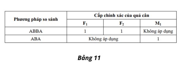 Tùy theo cấp chính xác của quả cân cần hiệu chuẩn, số phép lặp được quy định trong bảng