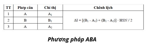 Phương pháp so sánh ABA. Trong phương pháp này, tiến hành 3 phép cân theo thứ tự trong bảng