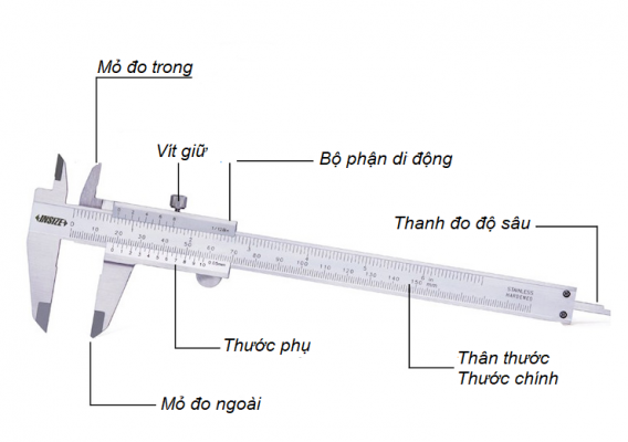 Thước cặp là dụng cụ thường được sử dụng trong nhiều công việc khác nhau: cơ khí chế tạo, điện tử, xây dựng, kiến trúc…với các chức năng đo cụ thể như hình dưới: