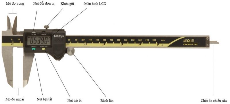 - Thước cặp điện tử (digital caliper) là loại chính xác nhất